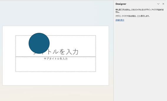 また、テキストを入力または画像の挿入後にデザイナーにデザインアイディアが表示されたのにもかかわらず複数の図形を挿入するとデザインアイディアが表示されません。